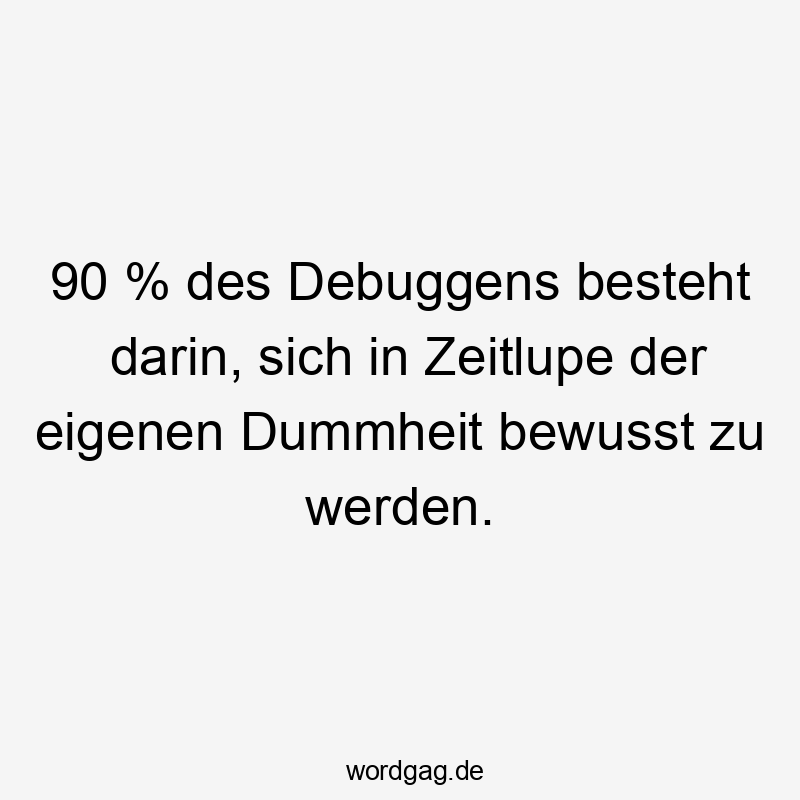 90 % des Debuggens besteht darin, sich in Zeitlupe der eigenen Dummheit bewusst zu werden.