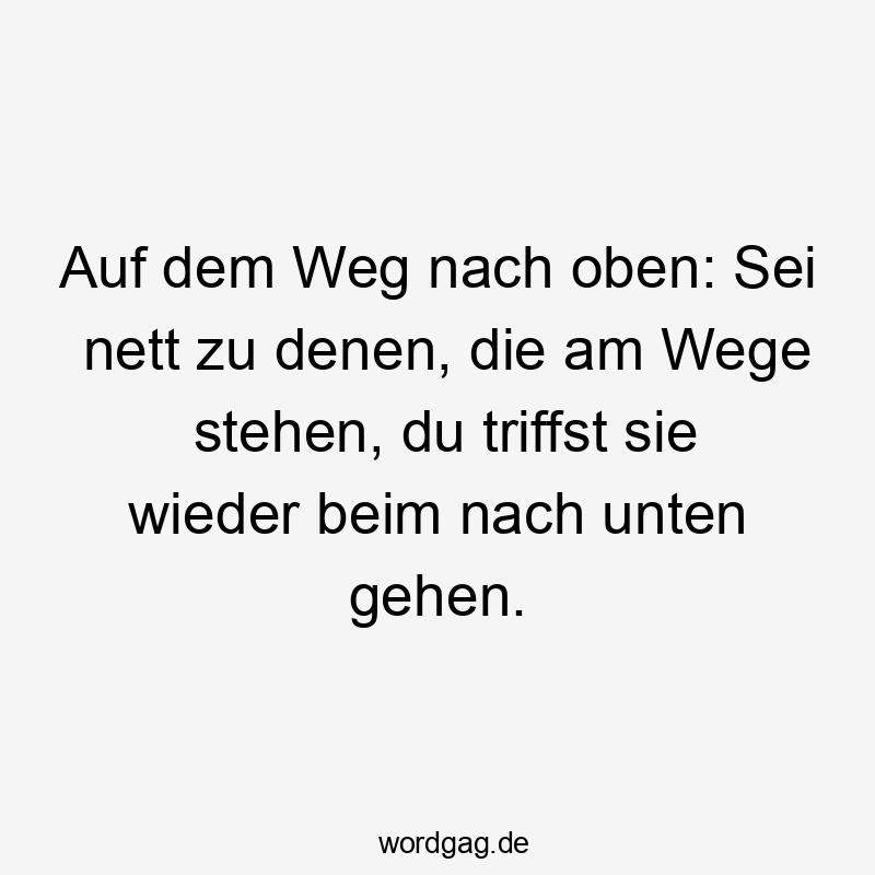 Auf dem Weg nach oben: Sei nett zu denen, die am Wege stehen, du triffst sie wieder beim nach unten gehen.