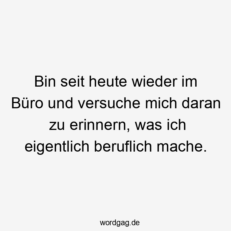 Bin seit heute wieder im Büro und versuche mich daran zu erinnern, was ich eigentlich beruflich mache.