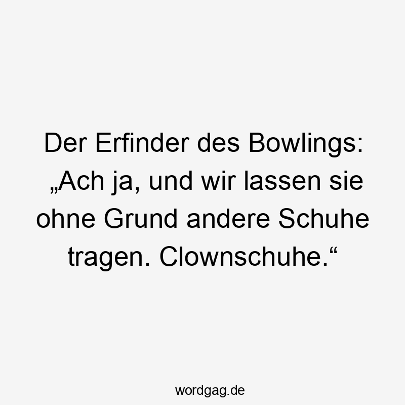 Der Erfinder des Bowlings: „Ach ja, und wir lassen sie ohne Grund andere Schuhe tragen. Clownschuhe.“