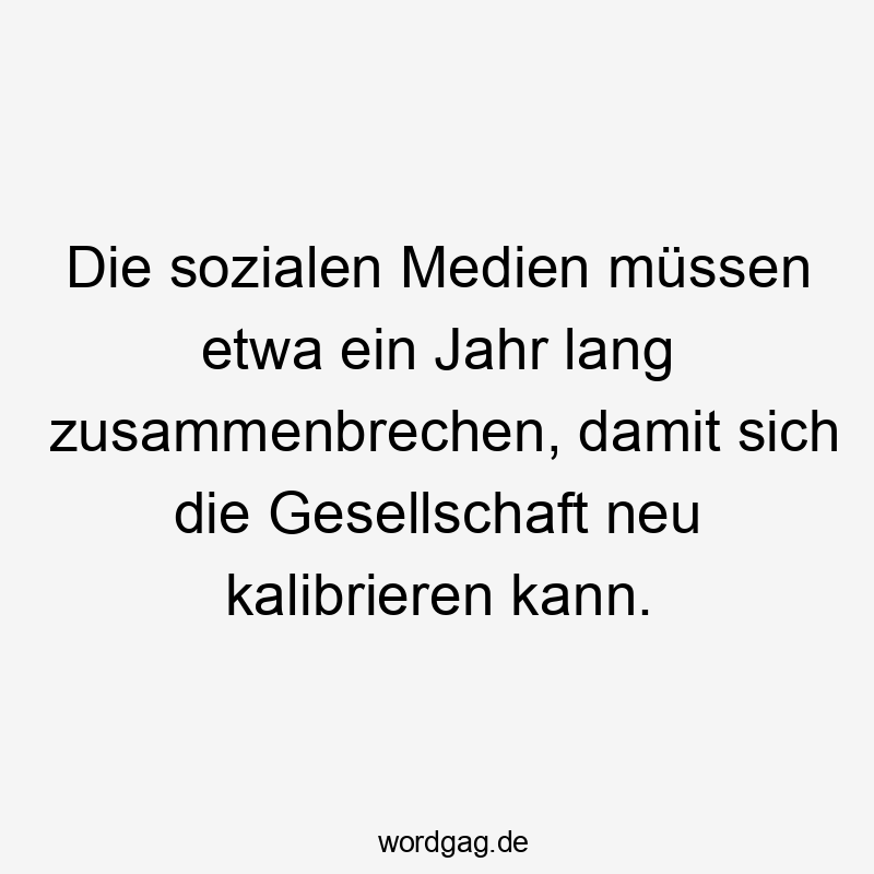 Die sozialen Medien müssen etwa ein Jahr lang zusammenbrechen, damit sich die Gesellschaft neu kalibrieren kann.