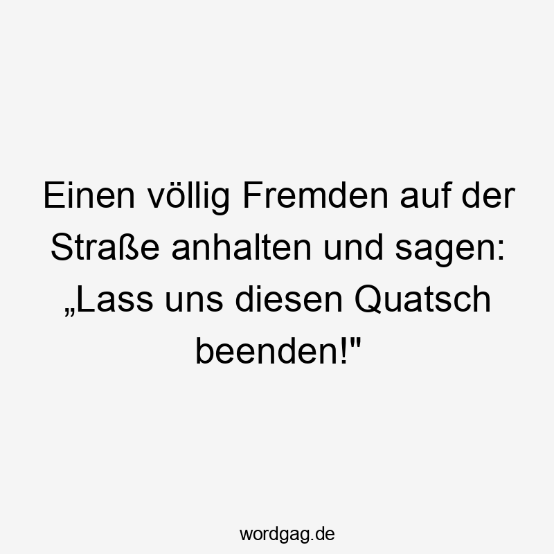 Einen völlig Fremden auf der Straße anhalten und sagen: „Lass uns diesen Quatsch beenden!“