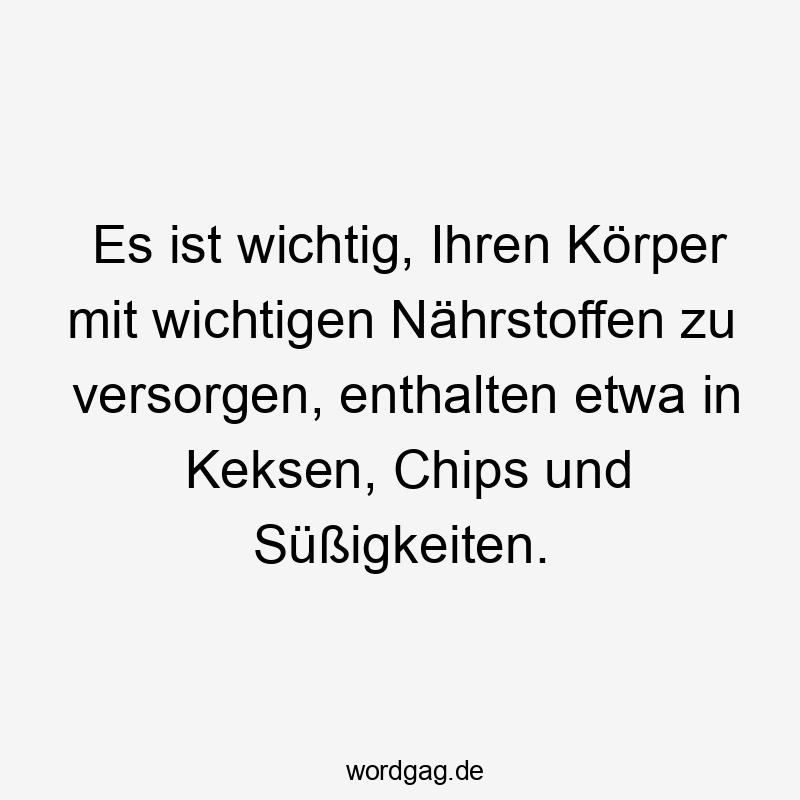 Es ist wichtig, Ihren Körper mit wichtigen Nährstoffen zu versorgen, enthalten etwa in Keksen, Chips und Süßigkeiten.