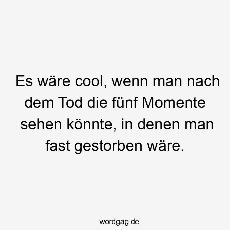 Es wäre cool, wenn man nach dem Tod die fünf Momente sehen könnte, in denen man fast gestorben wäre.