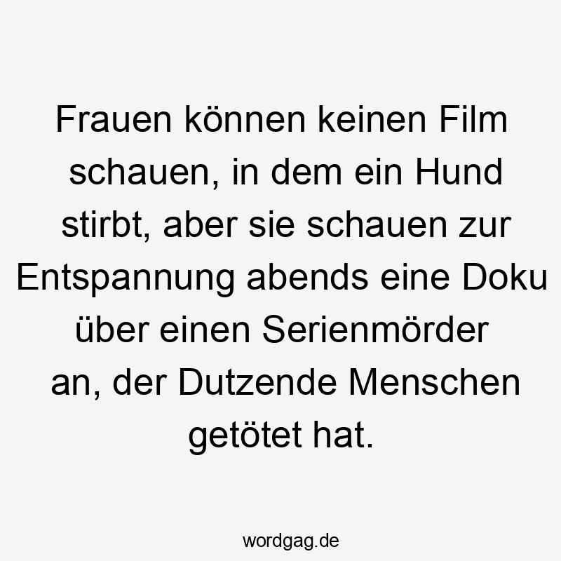 Frauen können keinen Film schauen, in dem ein Hund stirbt, aber sie schauen zur Entspannung abends eine Doku über einen Serienmörder an, der Dutzende Menschen getötet hat.