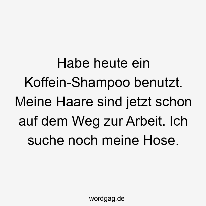 Habe heute ein Koffein-Shampoo benutzt. Meine Haare sind jetzt schon auf dem Weg zur Arbeit. Ich suche noch meine Hose.