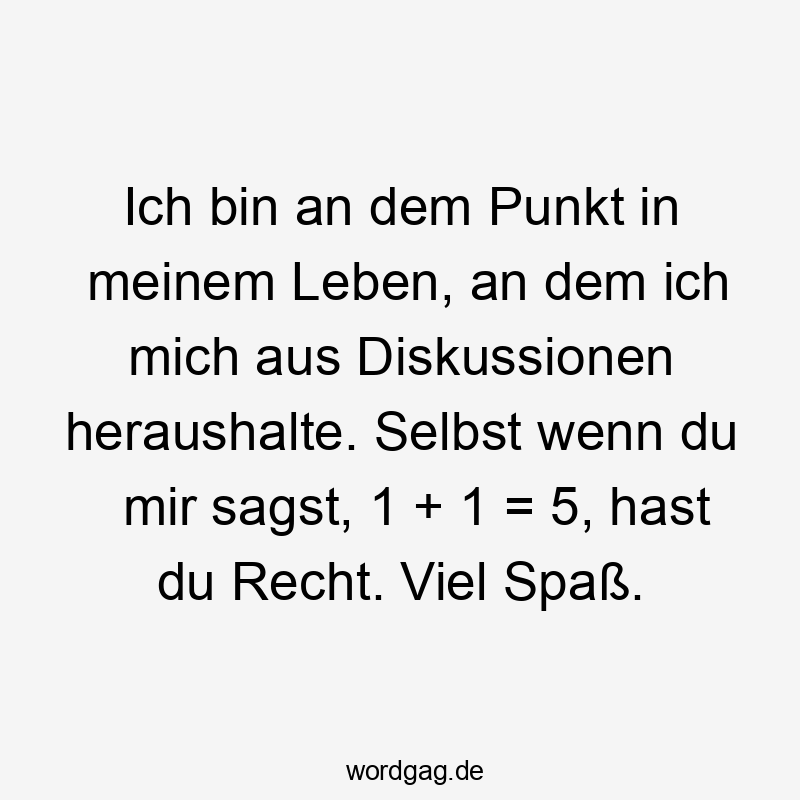 Ich bin an dem Punkt in meinem Leben, an dem ich mich aus Diskussionen heraushalte. Selbst wenn du mir sagst, 1 + 1 = 5, hast du Recht. Viel Spaß.