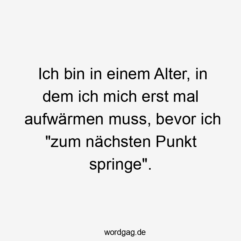 Ich bin in einem Alter, in dem ich mich erst mal aufwärmen muss, bevor ich „zum nächsten Punkt springe“.