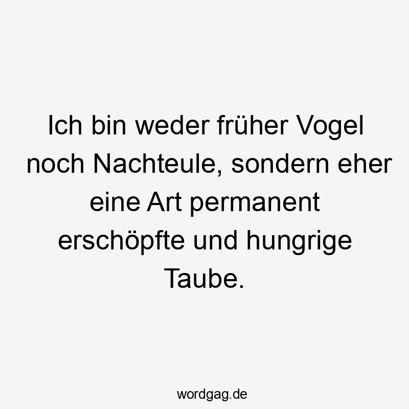 Ich bin weder früher Vogel noch Nachteule, sondern eher eine Art permanent erschöpfte und hungrige Taube.