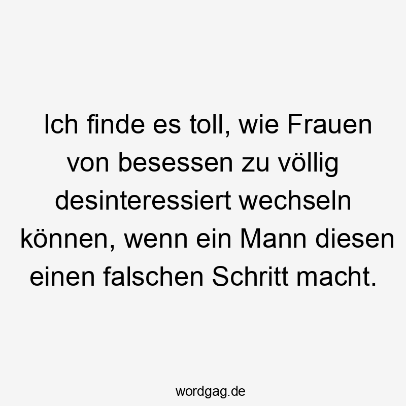 Ich finde es toll, wie Frauen von besessen zu völlig desinteressiert wechseln können, wenn ein Mann diesen einen falschen Schritt macht.