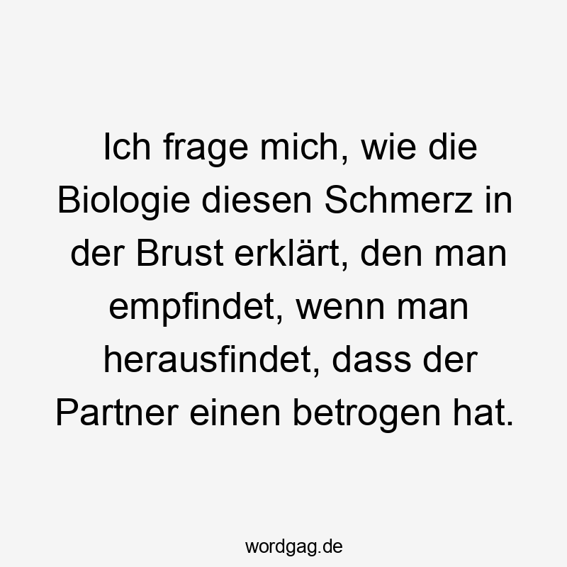 Ich frage mich, wie die Biologie diesen Schmerz in der Brust erklärt, den man empfindet, wenn man herausfindet, dass der Partner einen betrogen hat.