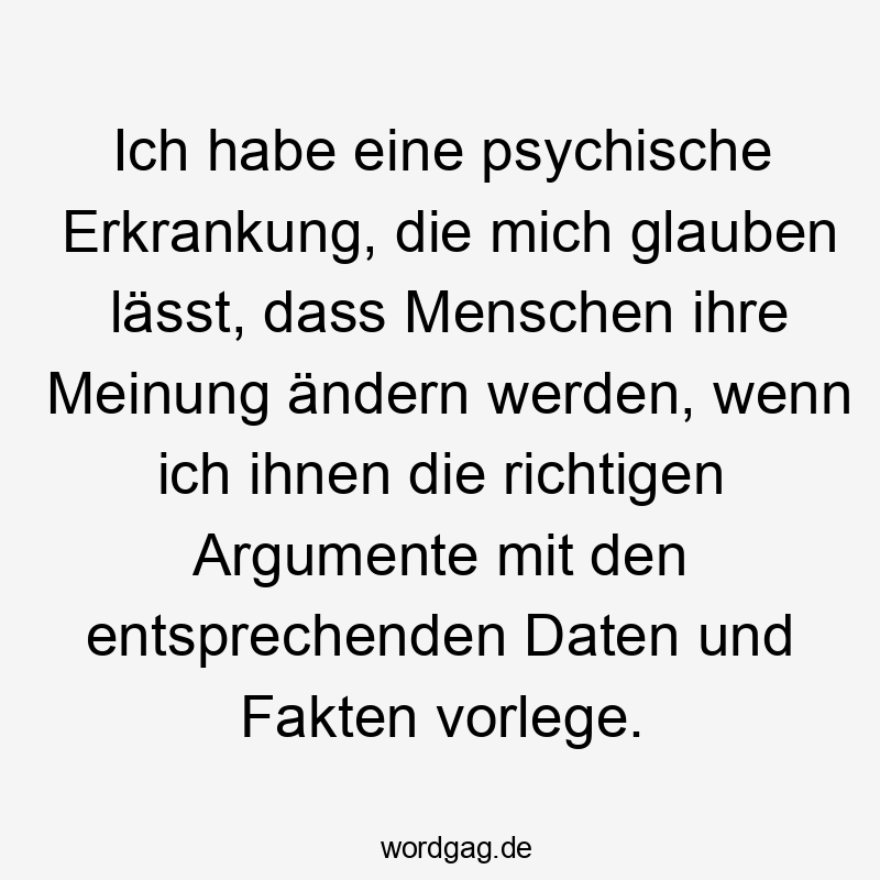 Ich habe eine psychische Erkrankung, die mich glauben lässt, dass Menschen ihre Meinung ändern werden, wenn ich ihnen die richtigen Argumente mit den entsprechenden Daten und Fakten vorlege.