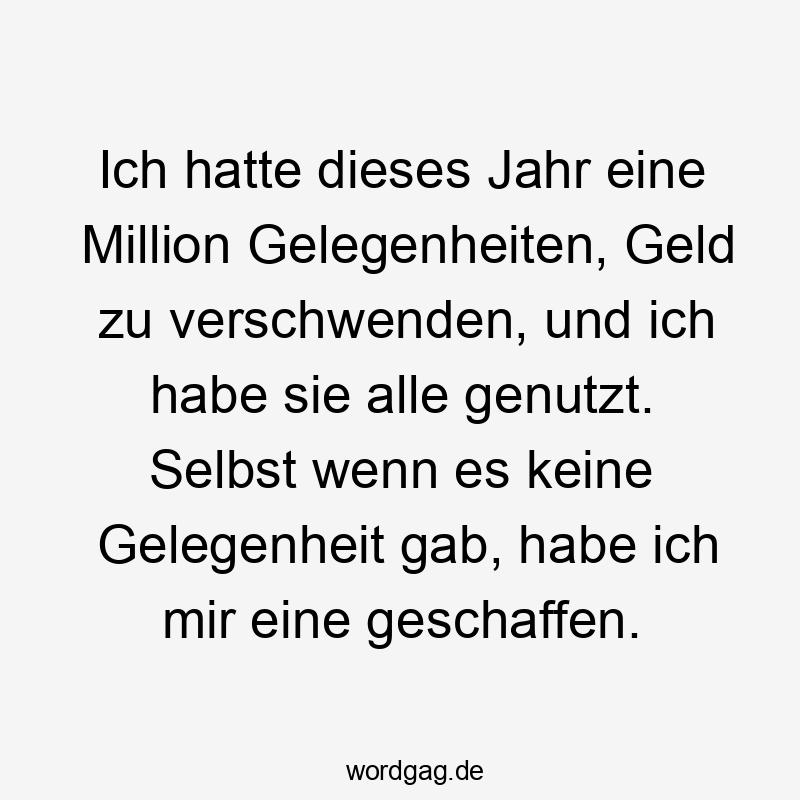 alle, Chancen, Geld, Geld ausgeben, Gelegenheit, Gelegenheiten, Humor, Ironie, Jahr, keine, Million, mir, selbst, Selbstironie, Spaß, verschwenden, zu