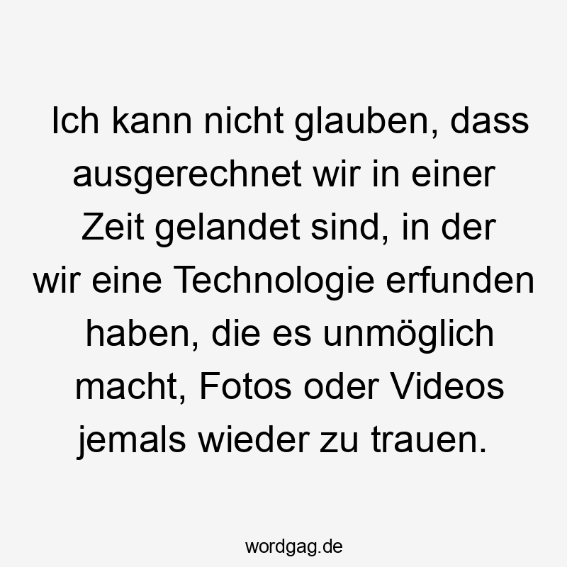 Ich kann nicht glauben, dass ausgerechnet wir in einer Zeit gelandet sind, in der wir eine Technologie erfunden haben, die es unmöglich macht, Fotos oder Videos jemals wieder zu trauen.