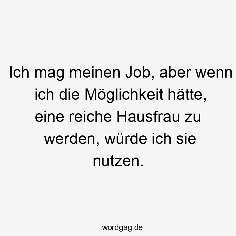 Ich mag meinen Job, aber wenn ich die Möglichkeit hätte, eine reiche Hausfrau zu werden, würde ich sie nutzen.