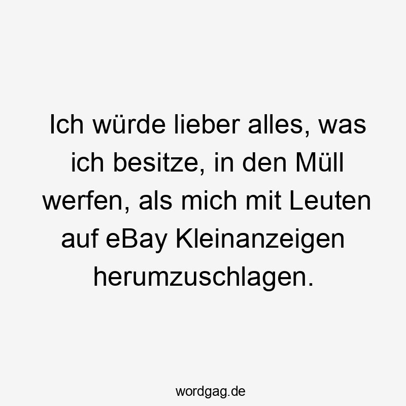 Ich würde lieber alles, was ich besitze, in den Müll werfen, als mich mit Leuten auf eBay Kleinanzeigen herumzuschlagen.