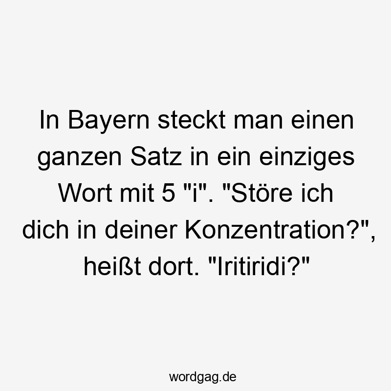 In Bayern steckt man einen ganzen Satz in ein einziges Wort mit 5 „i“. „Störe ich dich in deiner Konzentration?“, heißt dort. „Iritiridi?“
