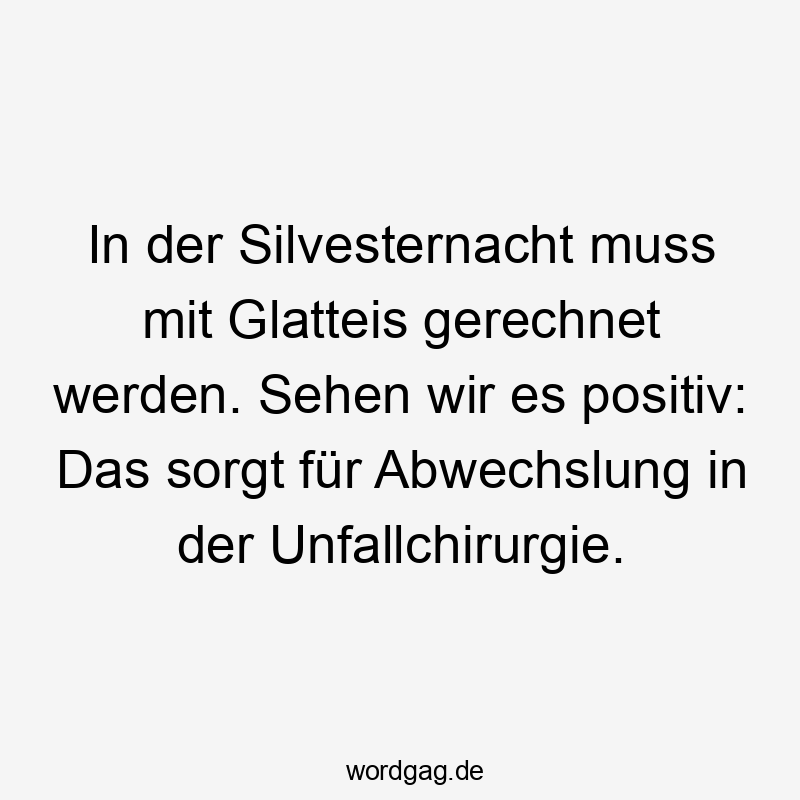 In der Silvesternacht muss mit Glatteis gerechnet werden. Sehen wir es positiv: Das sorgt für Abwechslung in der Unfallchirurgie.