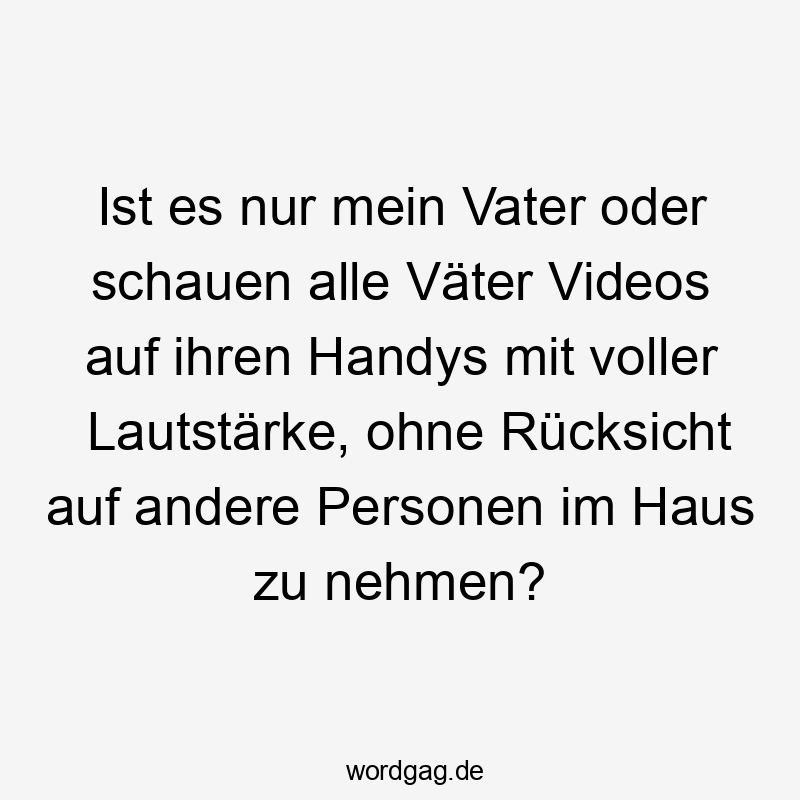 Ist es nur mein Vater oder schauen alle VĂ€ter Videos auf ihren Handys mit voller LautstĂ€rke, ohne RĂŒcksicht auf andere Personen im Haus zu nehmen?