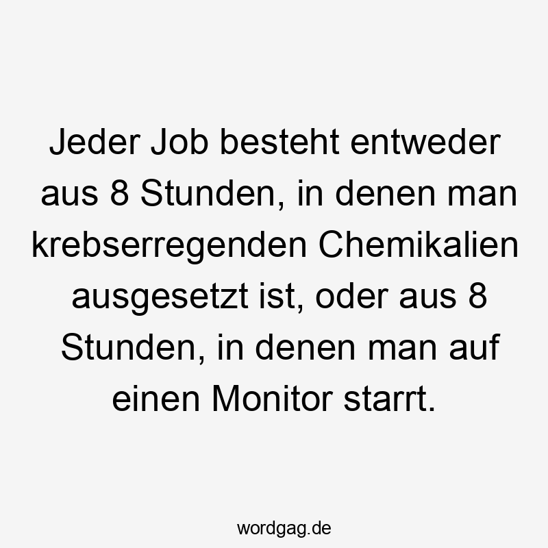 Jeder Job besteht entweder aus 8 Stunden, in denen man krebserregenden Chemikalien ausgesetzt ist, oder aus 8 Stunden, in denen man auf einen Monitor starrt.