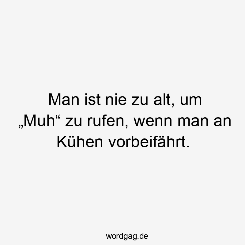 Man ist nie zu alt, um „Muh“ zu rufen, wenn man an Kühen vorbeifährt.