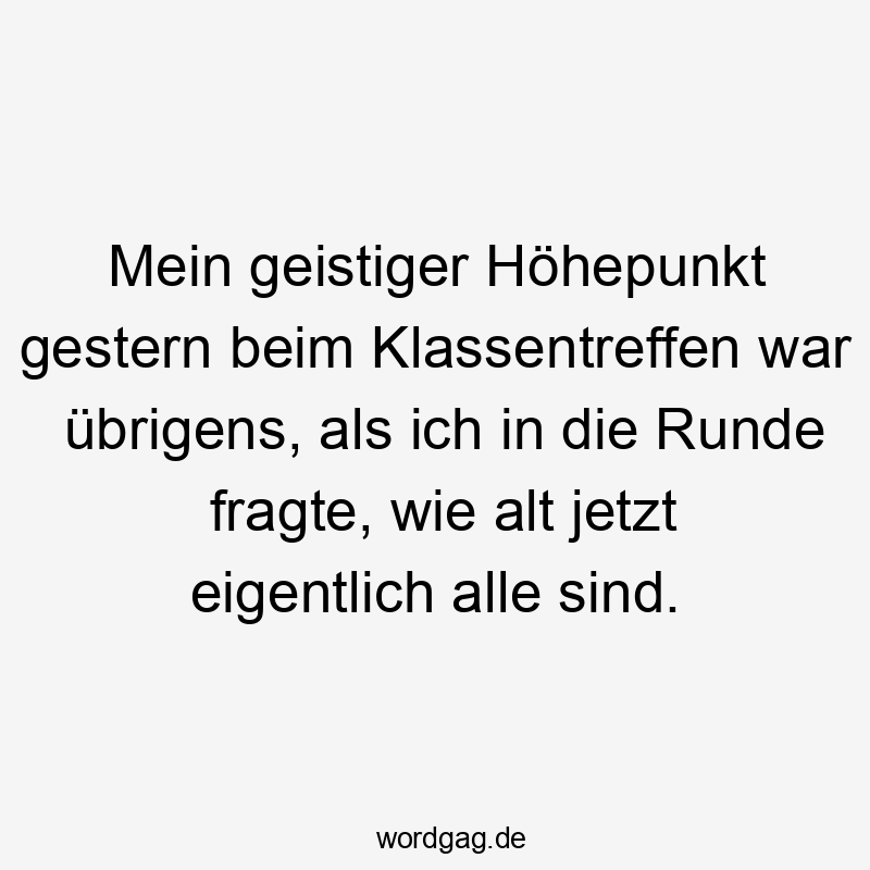 Mein geistiger Höhepunkt gestern beim Klassentreffen war übrigens, als ich in die Runde fragte, wie alt jetzt eigentlich alle sind.