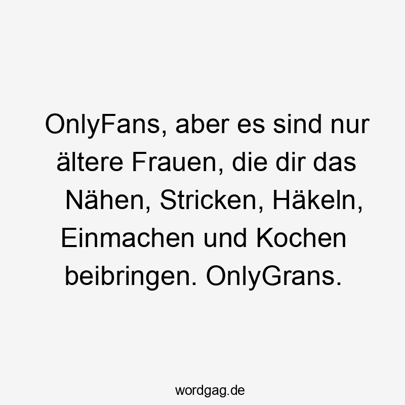 OnlyFans, aber es sind nur ältere Frauen, die dir das Nähen, Stricken, Häkeln, Einmachen und Kochen beibringen. OnlyGrans.