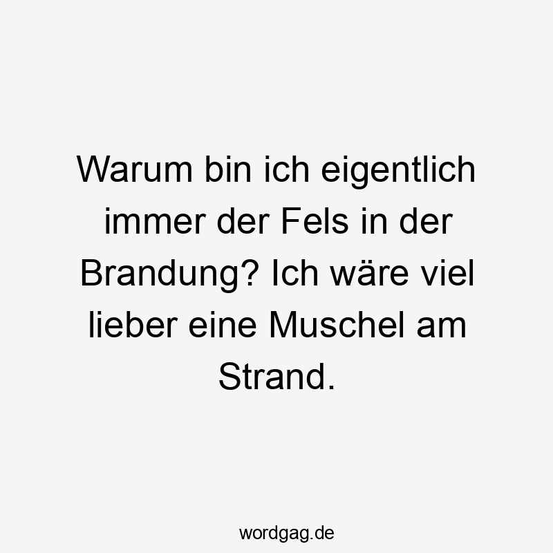Lustige Brandung Sprüche - Warum bin ich immer der Fels in der Brandung? Ich wäre viel lieber eine Muschel am Strand.