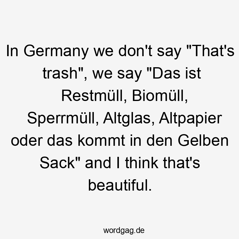 "Das ist Recycling auf Deutsch! 🗑️🌱♻️🇩🇪 Wer braucht schon einfach nur 'Müll', wenn man so viele Optionen hat? 😂"