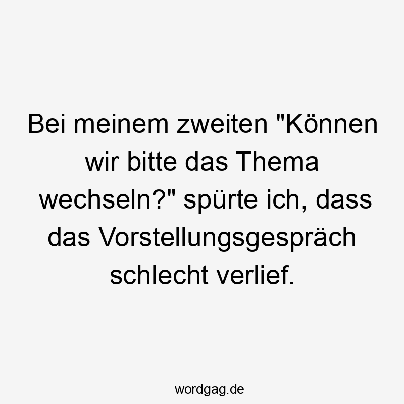 "Oh oh, wenn du schon beim zweiten 'Können wir bitte das Thema wechseln?' bist, dann hast du wohl keine Chance mehr auf den Job! 🤣🙈 #Fail"