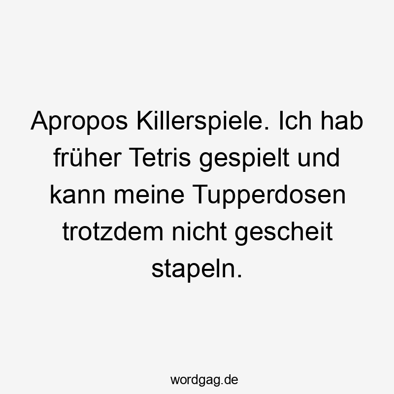 "Vielleicht solltest du mal versuchen, die Tupperdosen im Tetris-Stil zu stapeln! 🕹️📦😂"
