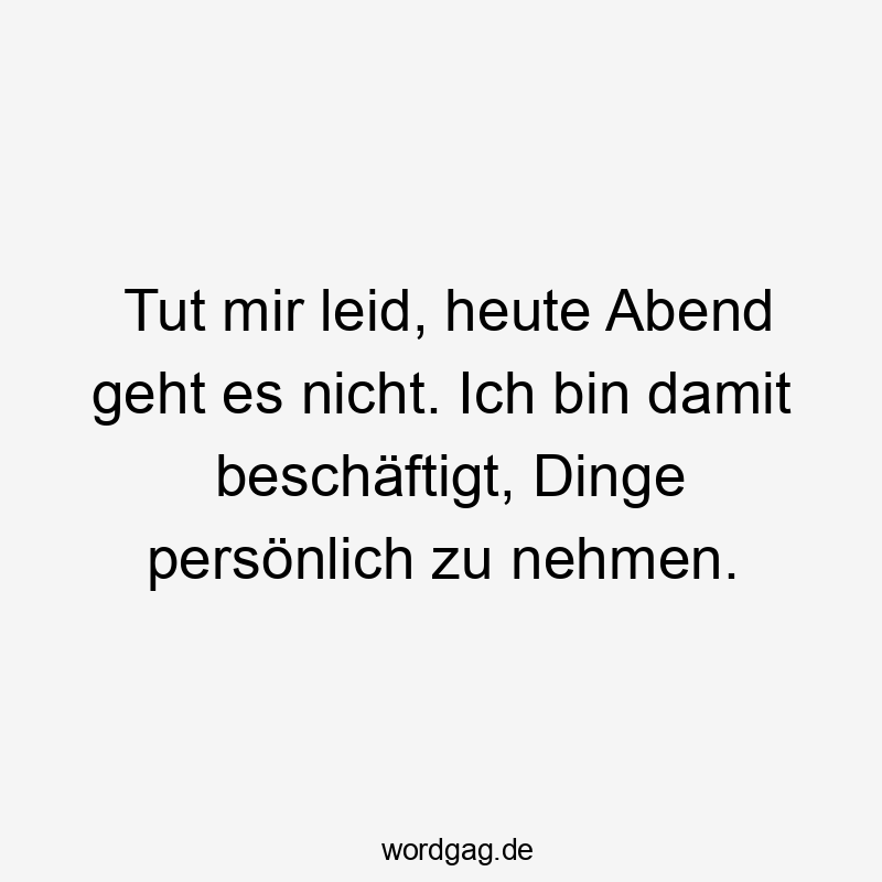 Tut mir leid, heute Abend geht es nicht. Ich bin damit beschäftigt, Dinge persönlich zu nehmen.