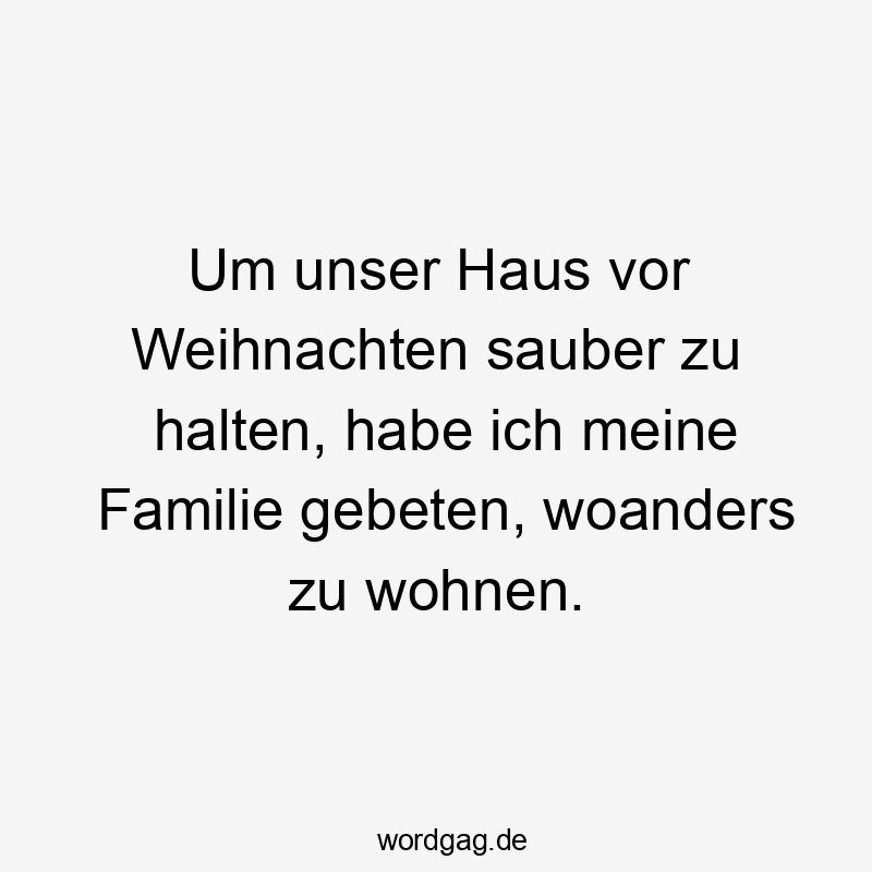 Familie, gebeten, halten, Haus, Humor, sauber, Sauberkeit, Umzug, Weihnachten, Weihnachten2023, woanders, wohnen, zu