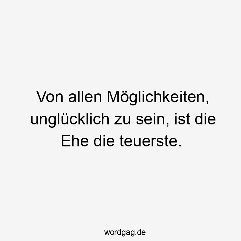 Von allen Möglichkeiten, unglücklich zu sein, ist die Ehe die teuerste.
