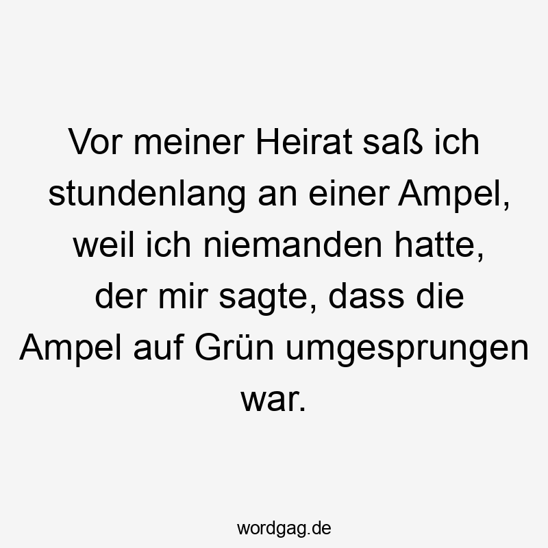 Vor meiner Heirat saß ich stundenlang an einer Ampel, weil ich niemanden hatte, der mir sagte, dass die Ampel auf Grün umgesprungen war.