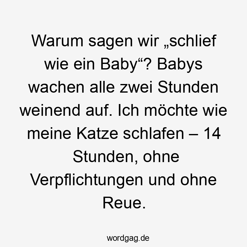 Warum sagen wir „schlief wie ein Baby“? Babys wachen alle zwei Stunden weinend auf. Ich möchte wie meine Katze schlafen – 14 Stunden, ohne Verpflichtungen und ohne Reue.