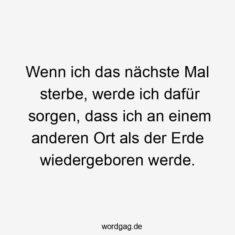 Wenn ich das nächste Mal sterbe, werde ich dafür sorgen, dass ich an einem anderen Ort als der Erde wiedergeboren werde.
