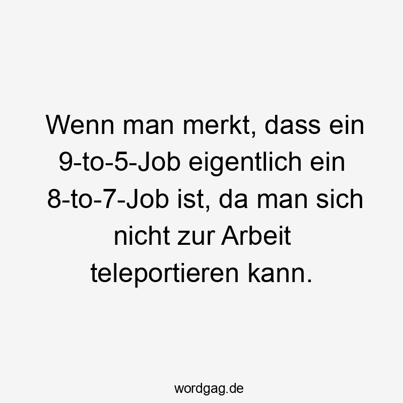 Wenn man merkt, dass ein 9-to-5-Job eigentlich ein 8-to-7-Job ist, da man sich nicht zur Arbeit teleportieren kann.